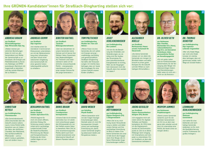 Mit diesem Plakat zeigt sich das Team der Grünen den Bürgern der Gemeinde.